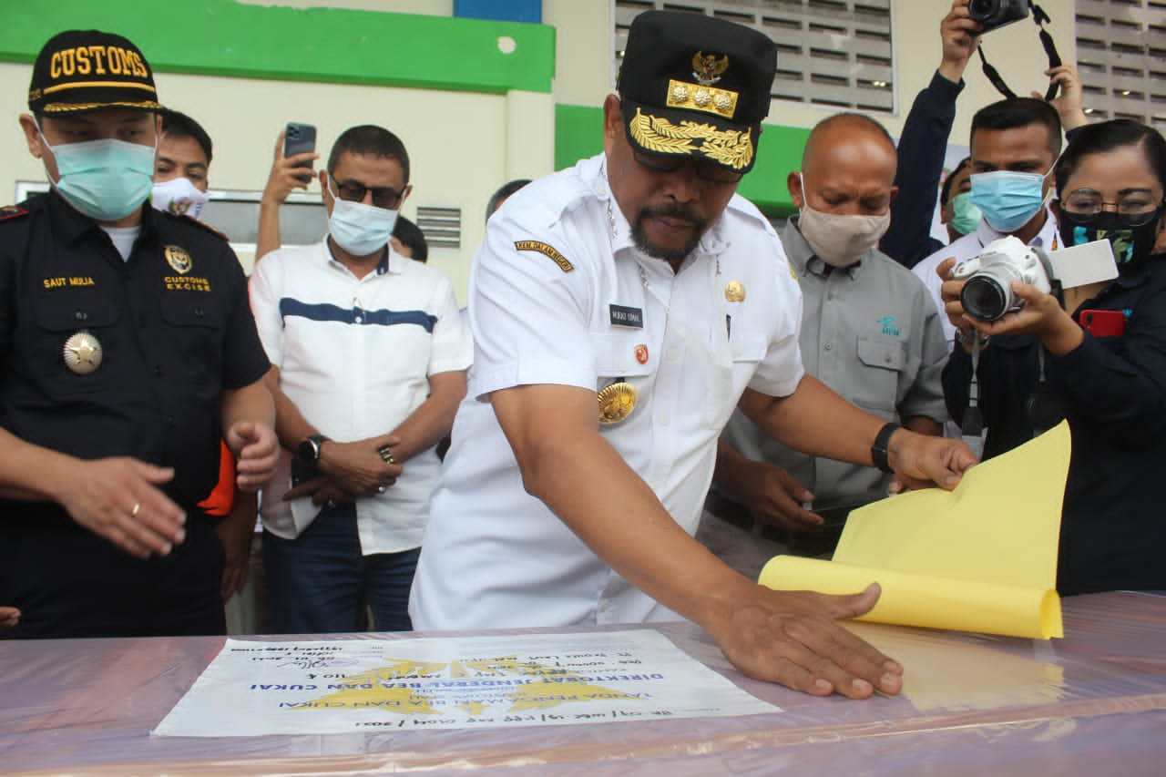 Seputar Indonesia Timur – Murad Ismail, Gubernur Maluku melepas ekspor Komoditas Perikanan, yaitu Ikan Tuna ke Narita Jepang.