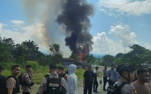 Dalam waktu singkat, situasi berubah menjadi kerusuhan besar. Massa dilaporkan membakar sejumlah fasilitas, termasuk asrama polisi, kios, dan rumah warga.
