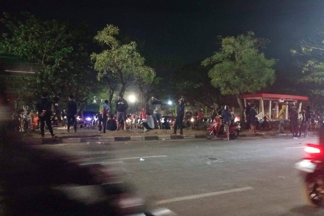 Sampai pada pukul 19.34 WITA, aksi blokade jalan masih terus berlangsung. Tetapi, tidak ada terlihat petugas kepolisian yang mengatur arus kendaraan yang terjebak macet.