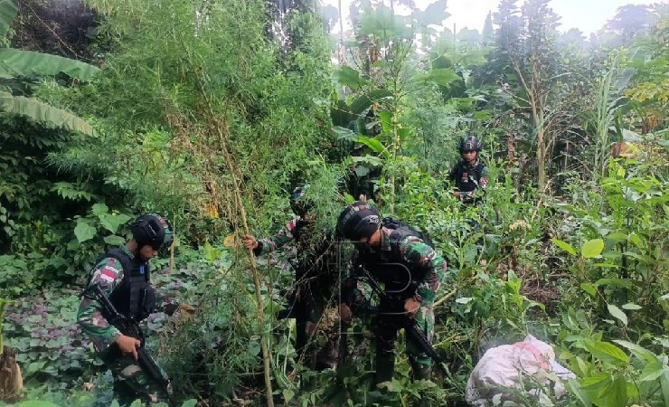 Seputar Indonesia Timur – Ladang ganja seluas kurang lebih 400 meter persegi ditemukan Satuan Tugas Pengamanan Perbatasan (Satgas Pamtas) RI-PNG Yonif 126/KC Kolakopsrem 172/PWY, pada Kamis (19/05/2022).